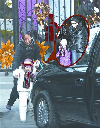近日,記者來到位于INTEL大廈的章子男居所附近,恰巧趕上章子怡之前使用的那輛黑色道奇駛出大廈,記者便跟了上去。該車最終來到位于望京的某小學門口,而后一中年女子迅速下車,站在門口開始向校園內(nèi)觀望。沒過多久,一個穿著一襲白衣的小女孩向中年女子跑了過來,該女孩就是章子男的女兒。中年女子未作停留,迅速將女孩領(lǐng)到了車內(nèi),隨后一溜煙離開。