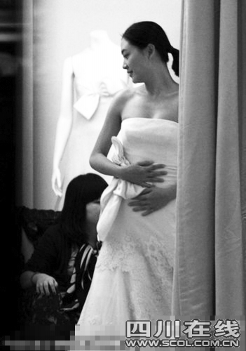 當(dāng)日,應(yīng)采兒先試穿了一件大露背簡約設(shè)計拖地白禮服,新娘姿態(tài)立即顯現(xiàn),由于裙擺過長,大約四五個助理及店員蹲在地上,為陳太太整理禮服。應(yīng)采兒對著鏡子反復(fù)照看,又俯身翻看擺在桌上的圖冊,進(jìn)試衣間換上第二套。同樣是簡潔大方的經(jīng)典設(shè)計款,腰間的綠色綢緞腰封更顯身材,應(yīng)采兒的表情顯示她更青睞這一套,對著鏡子陶醉半天,不停轉(zhuǎn)身,從各個角度欣賞鏡中的自己,笑容也愈發(fā)燦爛,遠(yuǎn)遠(yuǎn)看去就像一個即將踏入婚姻殿堂的普通女孩,一臉幸福。最后應(yīng)采兒換上第三套香檳色深V小禮服,優(yōu)雅的設(shè)計和顏色同樣很襯托應(yīng)采兒的膚色,三件禮服各有千秋,應(yīng)采兒卻相當(dāng)有主見,很快選擇其中一套,滿載而歸,步出店外時應(yīng)采兒同店員告別,心情越發(fā)燦爛。據(jù)悉,這個品牌的婚紗價格不菲,一套婚紗的價格大約在8000美金到12000美金之間,最貴的能買下一輛名車,但憑借過硬的品質(zhì)和永遠(yuǎn)不出錯的設(shè)計,依舊讓全世界的明星們趨之若鶩。珍妮弗·洛佩茲,莎朗·斯通等好萊塢明星都是她的忠實擁躉,劉嘉玲不丹大婚時,亦身著的是該品牌婚紗。