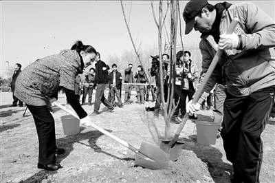 除了稱贊張國(guó)立和黃曉明熱心公益,馮小剛對(duì)徐帆和鄧婕也不吝贊美。他說(shuō):“徐帆、鄧婕都深明大義。雖然每次看到冷嘲熱諷的話也生氣,但是回家聽(tīng)我們一說(shuō),還是非常支持我們!卑l(fā)布會(huì)結(jié)束后,馮小剛、張國(guó)立等嘉賓來(lái)到奧林匹克公園參加“與大樹(shù)在一起”植樹(shù)活動(dòng)。 記者侯艷