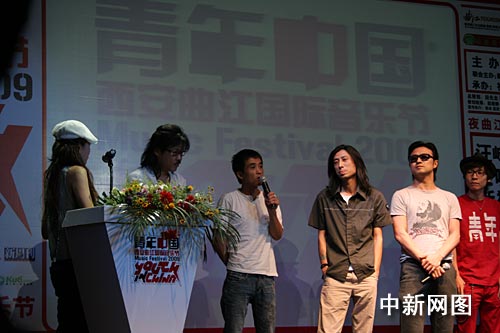 中新網(wǎng)7月2日電(楊洋) “青年中國(西安曲江)國際音樂節(jié)——2009新聞發(fā)布會暨青年音樂發(fā)展計劃啟動儀式”于7月2日在京舉行。汪峰、張楚、謝天笑等知名音樂人到場助威,現(xiàn)場氣氛火爆。本次音樂節(jié)將于7月10日在西安曲江開幕,是國內(nèi)第一個時尚視覺音樂節(jié)。