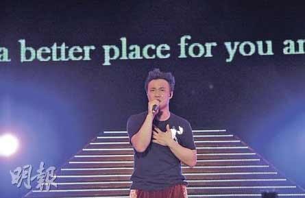 “明報(bào)”消息,Eason說(shuō)日前深夜看MJ的追悼會(huì),聽(tīng)到好多不同歌手演繹他的歌曲,非常感動(dòng),MJ真的是一個(gè)傳奇。為此他選唱自己很喜歡的MJ歌曲,向這位影響全世界音樂(lè)文化的巨星致敬。