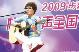 曾:嗯,最初是寫歌詞,當時是初三,因為考試壓力大,就自己涂涂畫畫寫出來了。開始有曲譜配歌詞是高三的時候,會彈吉他了。《學習×××的日子》(由于她說話聲音實在太綿羊,重復了3次,記者還是沒聽清楚歌名),是一首校園歌曲,這是第一首完整的歌,也是完整的曲,就為了鼓勵考英語專業(yè)四級的人們,加油、努力,只唱給自己的朋友聽過。大家覺得,還行吧。
