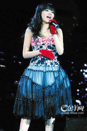 “快女”十強(qiáng)依次上臺演唱自己的拿手曲目,包括江映蓉的《一個人跳舞》、李霄云的《沉淀》、黃英的《映山紅》、郁可唯的《如果云知道》、劉惜君的《有一天我會》以及李媛希的《LOVE》等。郁可唯、李霄云、黃英等的演出都保持水準(zhǔn),而領(lǐng)先推出個人專輯的曾軼可則用招牌“綿羊音”唱起了專輯里的新歌《電車計劃》和《新的家》。曾軼可顯然自得其樂,頗為放松,在舞臺上彈唱之余,還有一些舞蹈動作。但除了臺下一個小小方陣的歌迷舉著“專輯大賣”的牌子大聲吶喊外,觀眾應(yīng)聲寥寥。前來“圓場”的主持人郭彪和吉杰則對曾軼可說:“你放心,你的專輯最少有兩張的銷量,因為我們倆都預(yù)定了!币字ツ