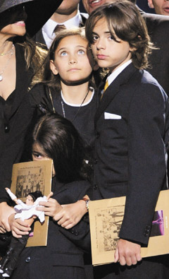 外電消息,據(jù)杰克遜家族的密友爆料,今年葛萊美獎頒發(fā)終身成就獎給已故天王巨星邁克爾•杰克遜,杰克遜媽同意讓12歲的王子和11歲的派瑞絲代表領(lǐng)獎,但不允許7歲的毯子現(xiàn)身公眾場合。