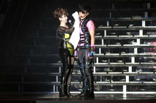 中新網(wǎng)5月18日電 羅志祥昨晚舉行演唱會(huì),現(xiàn)場(chǎng)十分熱烈,先是力邀王心凌上臺(tái),接著和蕭亞軒貼臉,令對(duì)方十分害羞,還和天后級(jí)歌手張惠妹一起曖昧合唱。