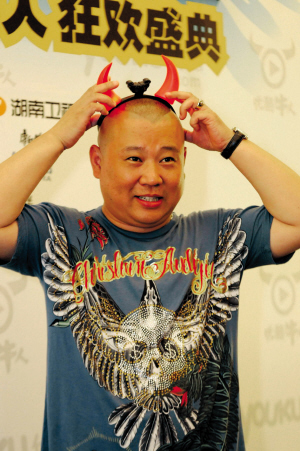 前晚,郭德綱以司儀身份出現(xiàn)在“優(yōu)酷牛人”狂歡盛典上,頭上頂著一副牛角,模樣相當(dāng)滑稽。頗為興奮的他面對媒體直奔主題:“今天好好跟你們說說官司的事!