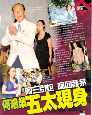 2007年8月,賭王將鄭詠詩視為五太太,他用了4500萬元為她買下一個復(fù)式房子。10個月內(nèi),何鴻燊先后在跑馬地買了三間物業(yè)送給鄭詠詩,這四項物業(yè)加起來價值7300多萬元,加上珠寶首飾和定期發(fā)的現(xiàn)金,保守估計,賭王一年內(nèi)在鄭詠詩身上已花了過億元。