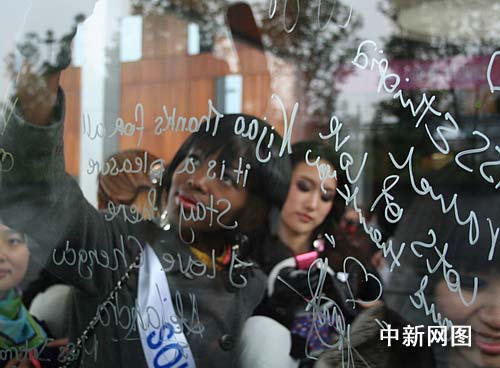 中新網(wǎng)成都11月19日電 (李鵬程) 19日下午,隨著三輛滿(mǎn)載各國(guó)選美小姐的大巴駛?cè)氪ㄍ秶?guó)際酒店的大門(mén),參加第49屆國(guó)際小姐世界大會(huì)總決賽的全部參賽選手已抵達(dá)成都。雖然天氣仍舊寒冷,但是佳麗們的精神面貌都極佳,對(duì)于第一次來(lái)到成都,她們顯得很興奮。主辦方隨后進(jìn)行簡(jiǎn)短而隆重的歡迎儀式,由迎賓志愿者向各國(guó)小姐贈(zèng)送了代表成都本地特色的熊貓玩偶。