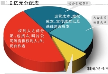 “我個人對這個分配比例沒有意見。”太合麥田老總宋柯表示,權(quán)利單位和音集協(xié)確定的這個收費模式,現(xiàn)在來看是比較合理的,一般同類協(xié)會的管理費在23%比較正常,而27%用于天合集團(tuán)開展收費也還可以接受,“會上大家認(rèn)為這錢花得還比較值”。