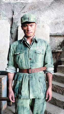 在電影版《紅日》中,著名演員楊在葆演繹的解放軍連長石東根形象深入人心。這是一個用戰(zhàn)刀挑著敵人的鋼盔,縱馬揚鞭自在豪情的“不怕死”的鐵漢英雄。這一經(jīng)典角色對青年演員的要求頗高,既要塑造人物扎實質(zhì)樸,又要有市場號召力。最終,從眾多一線小生中,耿樂脫穎而出,與李幼斌、尤勇組成中青年《紅日》“夢幻組合”。該劇尚未拍攝,播出權(quán)就被各大電視臺一搶而空。