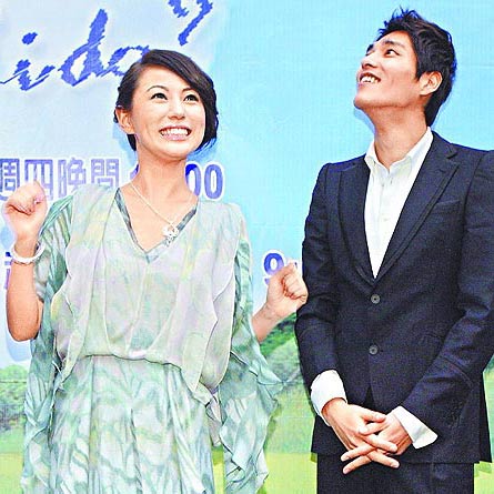 藍(lán)正龍(右)昨與劉心悠為《幸福的抉擇》造勢。