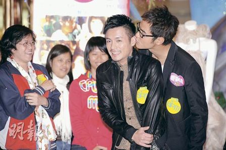 阮經(jīng)天任親耳朵,令粉絲開心不已。圖片均來自香港《明報(bào)》