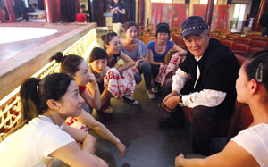 趙本山在二樓一直觀察排練,表情嚴肅。下樓后徑直走到臺前,把8位女孩叫到身邊。“多大了?”本山大叔態(tài)度和藹,先和她們嘮起了家常。