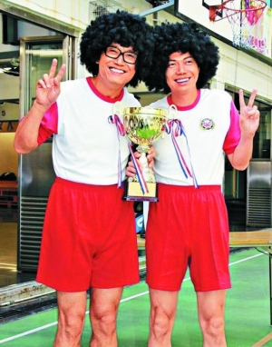 51歲的苗僑偉和41歲的謝天華前日在一間小學(xué)續(xù)拍無(wú)線新劇《老公萬(wàn)歲》,二人為了搞笑戲分,不惜自毀形象,穿著運(yùn)動(dòng)校服配爆炸頭出鏡,謝天華更提議與苗僑偉將褲頭拉高束腰,“越薯(粵語(yǔ)指傻里傻氣)越好”。兩人在《學(xué)警狙擊》中的“Laughing哥”和“孝哥”角色都以型男著稱,這次自拆招牌,兩人不但不擔(dān)心形象受損,謝天華還搞笑地表示,“我還擔(dān)心粉絲更多了呢!”苗僑偉透露戲中尚有多個(gè)搞笑造型,比這個(gè)爆炸頭更出彩,希望能帶給觀眾驚喜。