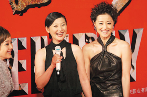 葛優(yōu)看著三位“女友”,模仿起影片的口吻來:“十年了,我很懷念她”。雖未指明是哪個(gè)“她”,但老搭檔劉蓓顯得非常開心,搶先回應(yīng)道:“很開心成為馮小剛第一部賀歲片的女主角”。而徐帆更是激動得熱淚盈眶:“因?yàn)橛辛速R歲片,讓觀眾開始愛看電影了,觀眾和電影演員之間的距離更近了!敝劣谡驹谝慌缘姆侗永m(xù)了紅毯上的“無厘頭”發(fā)言,她曖昧地看了看葛優(yōu),笑著說:“我將青春獻(xiàn)給了你!敝鞒秩藚桥宕冉舆^話茬追問范冰冰:“你把青春獻(xiàn)給了誰?”范冰冰尷尬一笑,連忙解釋道:“說實(shí)在的,我們這些演員都把青春獻(xiàn)給了電影,希望觀眾支持中國電影”。薛姣
