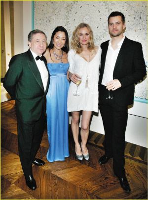 當(dāng)天晚上,楊紫瓊還和男友讓·托德拍拖出席Boucheron 150周年派對,巧合的是黛安·克魯格和男友喬舒亞·杰克遜也參加了該活動。