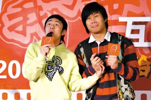 前天,由好萊塢著名女制片人羅燕導演的國內(nèi)首部電玩動作喜劇電影《哈!哈!哈!》在北京舉行啟動儀式,該片主演之一后舍男生(右圖)搞笑亮相。羅燕透露,該片初步確定上映的日期為5月上旬。
