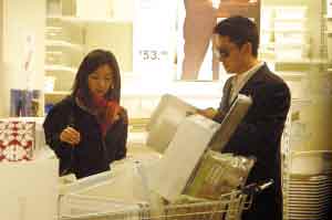 當晚10時左右,周杰與一神秘女子在北京某家私城看家私。雖然已經(jīng)是晚上,周杰還特意戴上一副超大墨鏡,以避免被人認出。周杰身邊則一直緊跟著一位長發(fā)黑衣女子,兩人共同推著購物車,仔細挑選物品,很快已經(jīng)裝滿一車。二人邊看邊商量,又一起量度尺寸,周杰挑選了一個鐵質盒子,身旁的女子似乎很會持家過日子,馬上表示太貴了,不劃算,周杰便順從地放下盒子,兩人儼如夫妻般有默契。沒多久二人到浴室部揀選用品,還專心聽店員講解設計。