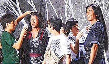 中新網(wǎng)4月22日電 電影《風(fēng)云II》在曼谷試拍2周,昨正式開鏡,鄭伊健(飾聶風(fēng))、郭富城(飾步驚云)一開打就打破頭,只見聶風(fēng)拿刀朝步驚云的頭砍去,步驚云來不及閃,刀便敲上他的腦門,當(dāng)下郭富城捂住左額頭痛苦不已,雖沒血流如注,但他額頭已腫如乒乓球大,他搞笑說:“沒關(guān)系啦,就算我為迎接奧運,額頭多個乒乓球!