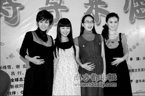 年明星懷孕生子又成熱潮。連陶虹,左小青都成大肚婆啦!昨天,都市喜劇《好孕來臨》在北京開機(jī)。陶虹、左小青等四位女星挺著大肚子出現(xiàn)在媒體面前,還互比誰的肚子大!