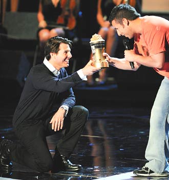 美國(guó)MTV電影獎(jiǎng)揭曉 阿湯哥為桑德勒跪頒大獎(jiǎng)(圖)