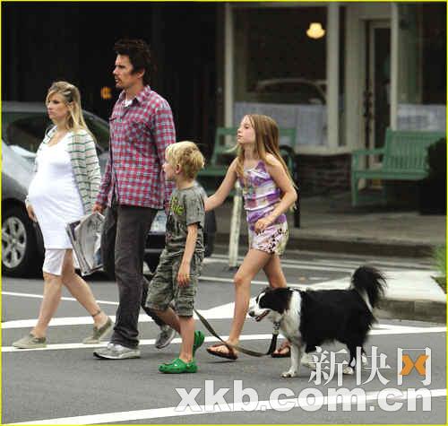 好萊塢男影星伊!せ艨藥е以诩~約一起慶祝父親節(jié)。37歲的伊!せ艨撕驼龖言械呐笥裄yanShawhughes 以及兩個孩子——9歲的MayaRay 和6歲的LevonRoan一起漫步街頭,顯得十分和睦。Maya和Levon的母親是伊!せ艨说那捌蕖萌R塢女演員烏瑪·瑟曼。