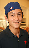 陳冠希(Edison)出席美國加州比華利山(beverly hills)時裝店舉行的燒烤派對,戴上印有“好正”中文字樣帽子。