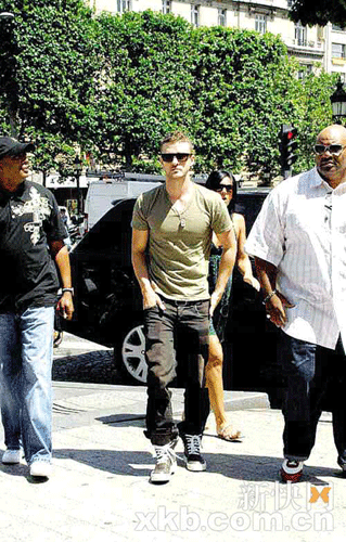 6月23日周一,賈斯汀·汀布萊克在法國巴黎被記者拍到與隨行的一個跟班吃飯購物玩得不亦樂乎。