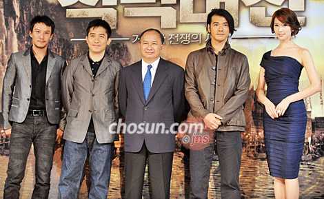 據(jù)朝鮮日報報道,昨日《赤壁大戰(zhàn):龐大的戰(zhàn)爭之開始》導演吳宇森(62歲)和主演梁朝偉(飾周瑜)、金城武(飾諸葛亮)、張震(飾孫權(quán))、林志玲(飾小喬)出席在首爾廣壯洞華克山莊酒店舉行的記者會,為影片在韓國首映造勢。
