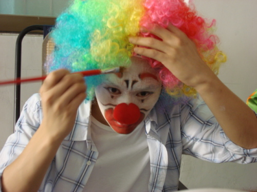 中新網(wǎng)8月14日電 據(jù)香港《太陽報》報道,張智霖日前在博客上公開幾張化上小丑妝的有趣相,第一張相是他戴著爆炸頭假發(fā),忙于白面上加色樣,而第二、三張相則是完成小丑妝,同小丑朋友合照,z中間還有一張是小丑張智霖拿著攝影機扮導(dǎo)演,可能他覺得張相太完美,故文字只得寥寥幾句:“我是一個演員,也是…一個小丑!