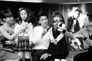 由于劇中謝霆鋒和張家輝都和孩子有對手戲,首映式現(xiàn)場,主辦方特意請來了兩個小女孩和兩位男星進行互動。