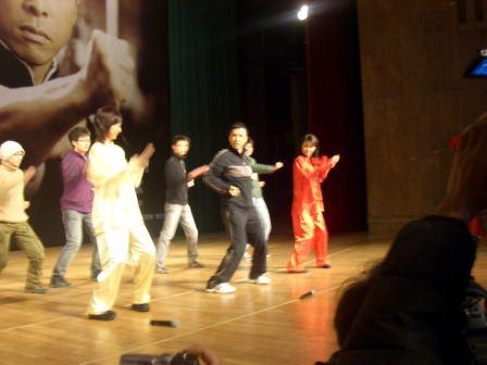 中新網(wǎng)11月28日電 11月27日,甄子丹來到北京大學百年講堂,為功夫賀歲片《葉問》宣傳造勢。當天正趕上甄子丹的生日,北大百名學子為甄子丹合唱生日快樂歌,場面十分溫馨。甄子丹被學生們的熱情所感動,非常開心,更擺開架勢教北大學子打起了詠春拳。甄子丹稱,“《葉問》不只是功夫片,它在展示了詠春拳魅力的同時,更發(fā)揚了一種精神,我相信那是中國人的精神!