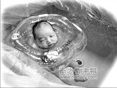 剛為人父的吳啟華給女兒套上救生圈,相當(dāng)有趣。