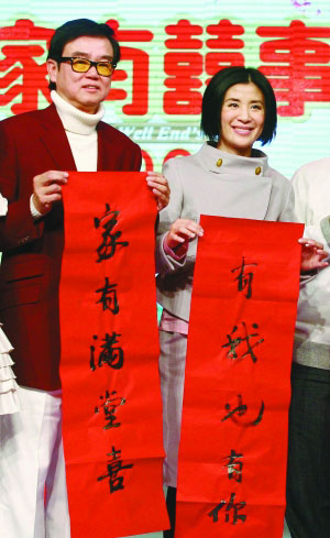 香港喜劇經(jīng)典《家有喜事》系列時隔11年后推出的《家有喜事2009》定于明年1月28日大年初三上映。影片主演黃百鳴、吳君如、姚晨、郭濤以及導(dǎo)演谷德昭等出席了昨日的發(fā)布會。該片是吳君如生子后接演的首部電影,不過她表示已有意減產(chǎn),多留時間給家人。盡管老公陳可辛已提出想與自己合作新片,但是吳君如透露因為自己不會減片酬,所以還是希望老公多去賺外快。