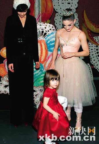 周日,凱蒂·霍爾姆斯帶著打扮似小公主的蘇瑞一起去紐約芭蕾舞團(tuán)觀看劇目《胡桃夾子》,并在后臺(tái)和芭蕾舞演員合影留念。