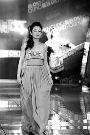 這對混跡影視圈多年的資深人士,對于T臺這個陌生的環(huán)境卻很生疏,短短50米走得實在不容易。陳凱歌穿的是一身黑色西裝,配上絲絨領(lǐng)帶和白襯衫,一派儒雅氣質(zhì)?烧嬉私(jīng)地走一段50米的T臺,陳導(dǎo)的心情卻緊張起來了,身材本就“不模特”的他,不但一路走得東倒西歪,走到鏡頭前時,也不知該如何擺pose,情急之下伸出右手,拿食指比劃了一圈,手執(zhí)導(dǎo)筒時的那股霸氣藏也藏不住。