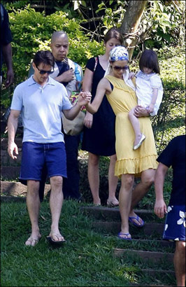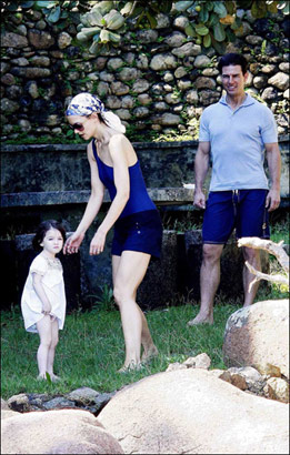 昨日(2月2日)記者拍到了在巴西盡情享受家庭生活的湯姆·克魯斯一家。一家人沐浴在陽光下,異常幸福。阿湯哥身穿淡藍色上衣,深藍色短褲一改往日英挺造型,阿湯嫂則脫掉了席地長裙,穿起了露肩小背心,休閑自得,他們可愛的小女兒則一身白色連衣裙,一家人齊樂融融,羨煞旁人。