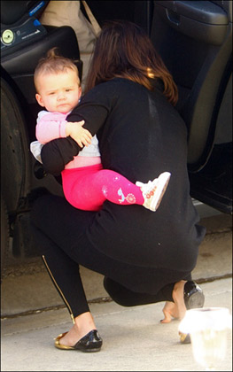 成為了媽媽的杰西卡·阿爾芭已經(jīng)恢復(fù)了窈窕的身材,一身黑色,但是明黃色的書包成為了全身的亮點(diǎn),星范十足。而懷抱中的閨女則是好像深思者這樣,在想問題。