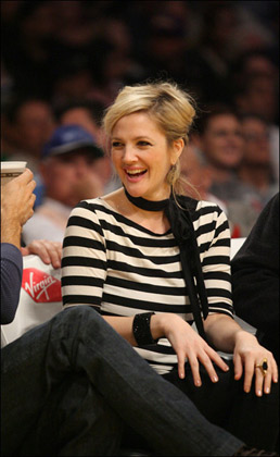 最近心情大好的德魯·巴里摩爾回到了洛杉磯,頭一件事情就是去觀看了洛杉磯湖人的NBA比賽,賽場(chǎng)的德魯·巴里摩爾不時(shí)開懷大笑。當(dāng)晚的裝扮更是讓人看著舒服的同時(shí),星味十足,條紋寬肩上衣配黑色圍巾,黑色仔褲黑色高跟鞋,青春洋溢,實(shí)在好看。
