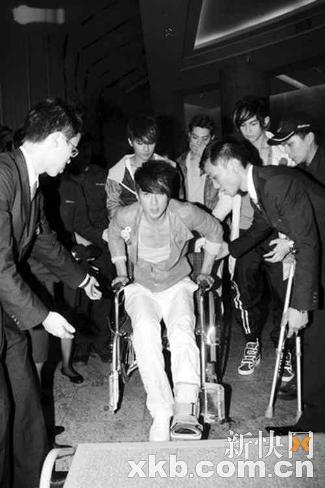 他說首晚個唱結束即到醫(yī)院照X光,證實是骨裂,他還生自己的氣,希望不會讓歌迷看到他們不夠High,要退票。看到三子“舞不!保瑓亲鸩唤f:“我好想跑呀。”