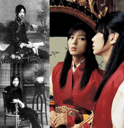 昨天,韓國(guó)電影公司公開(kāi)梅蘭芳照片,與李準(zhǔn)基在電影《王的男人》中“孔吉”扮相十分相像,因此吸引了人們的眼球。從照片上看,銳利的眼神、筆直的下頜線、站立姿態(tài)以及演員的職業(yè),兩人在很多方面都非常相像。