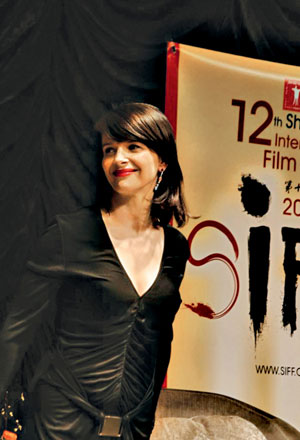 作為上海國際電影節(jié)的傳統(tǒng)預熱活動,第六屆法國電影展影迷見面活動昨日在上海影城舉辦,主角是朱麗葉·比諾什。32年前,雕刻家父親就帶著12歲的她到過上海,“我太小,沒有印象了。今天舊地重游,感覺上海是一個充滿哲學味的城市!北戎Z什透露,12歲的她怕生,而昨天面對眾多影迷,44歲的她是那么從容、優(yōu)雅,親切。