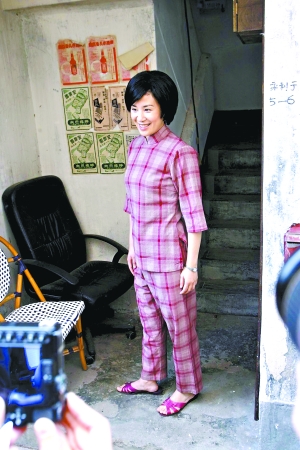 出現在片場的吳君如穿一身格子套裝,很有鄉(xiāng)土味。她說母親來探班的時候也嚇了一跳,沒想到在劇中的造型是這樣的。但吳君如說片中的角色其實很像自己,雖然是一個很悲情的角色,但她很希望電影中的這種上世紀60年代人人為我,我為人人的精神能讓大家溫故知新。