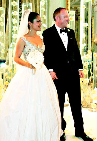 據(jù)臺灣《聯(lián)合報》報道,42歲的薩爾瑪·海耶克今年情人節(jié)與弗朗索瓦·昂利·皮諾特低調地在巴黎公證結婚,并在25日于水都威尼斯再度步上紅毯。婚禮于當?shù)匾粭?8世紀的歌劇院進行,薩爾瑪與弗朗索瓦一歲半的女兒則當花童。
