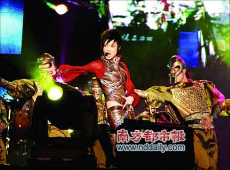 壓軸的李宇春一出場就聲勢浩大。煙火四射,黃色氣球簇擁著一起升天,李宇春在龐大的伴舞團開路下殺到,滿場歡呼。大家一起和應《我的王國》、《HappyHour》、《冰菊物語》和《kulala》,顯現(xiàn)李宇春依然是天娛一姐的地位。(記者 何穎珊)
