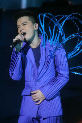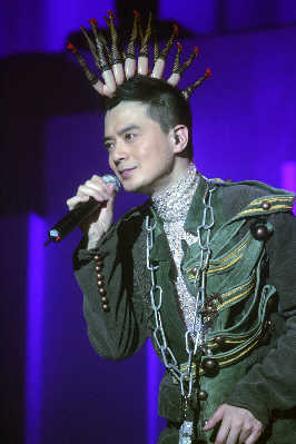 與其他流行歌手的演唱會(huì)相比,昨夜的上海大舞臺(tái)并未爆滿,但好在滿場(chǎng)都是黃耀明以及“人山人海”的死忠粉絲,所以當(dāng)周耀輝、當(dāng)李端嫻、當(dāng)AT17的ELLEN以及林一峰等人陸續(xù)入場(chǎng),均收獲了粉絲的熱情尖叫。整個(gè)現(xiàn)場(chǎng)猶如“人山人!迸c家人的節(jié)日聚會(huì)一般熱鬧,還未開場(chǎng),內(nèi)場(chǎng)前區(qū)已經(jīng)擠滿了隨著音樂(lè)跳躍的歌迷。當(dāng)燈光全部暗下,伴隨著歌迷熱情的歡呼聲,黃耀明猛然出現(xiàn)在舞臺(tái)正中,幕布尚未全部拉開,身著白色羽毛褲的黃耀明唱起歌曲《下世紀(jì)再嬉戲》。戴著黃耀明經(jīng)典的妖精耳朵或者頭頂白色長(zhǎng)發(fā)的歌迷們開始集體大聲跟唱;蛟S對(duì)于不少死忠歌迷而言,這場(chǎng)演出仍然伴隨著許多遺憾,比如黃耀明的造型在早前許多演唱會(huì)上用過(guò),開場(chǎng)的帽子曾在“滿天神佛”演唱會(huì)上用過(guò),羽毛褲則曾在“光天化日”演唱會(huì)上穿過(guò),而后換上的第二套衣服也曾在“達(dá)明一派為人民服務(wù)”演唱會(huì)上用過(guò)。但每當(dāng)他下臺(tái)換裝,場(chǎng)內(nèi)便會(huì)響起一陣陣期盼的歡呼聲,甚至有歌迷干脆對(duì)著停下來(lái)與歌迷打招呼的黃耀明大喊:“講廣東話!”對(duì)歌迷而言,能夠一次看到“滿天神佛”、“光天化日”以及黃耀明與港樂(lè)合作的三場(chǎng)演唱會(huì)的精華,也算是不虛此行。