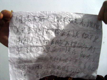 現(xiàn)場發(fā)現(xiàn)的抗議信