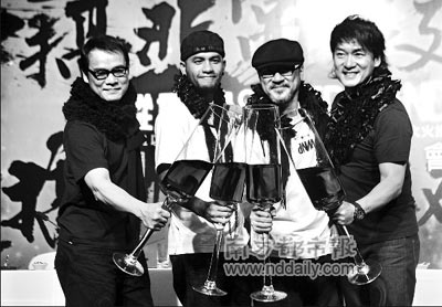 本報(bào)訊 (記者 黃銳海)李宗盛、羅大佑、周華健三位臺(tái)灣樂壇殿堂級(jí)老將,再加上一個(gè)稍微后生點(diǎn)的張震岳,最近在臺(tái)灣組建了一支名為“縱貫線”的樂隊(duì),他們自稱是“臺(tái)灣最老的”樂隊(duì),因?yàn)樗娜说哪挲g加起來超過了200歲。近日,四人就在臺(tái)灣舉行了發(fā)布會(huì),更表示他們現(xiàn)在最重要的事情,就是瞄準(zhǔn)明年“金曲獎(jiǎng)”的“最佳新樂隊(duì)”大獎(jiǎng)。