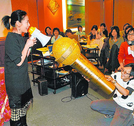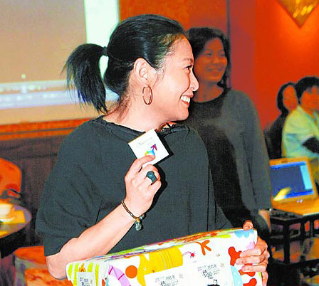 歌迷送劉若英(左)巨型麥克風(fēng),希望她繼續(xù)唱歌。