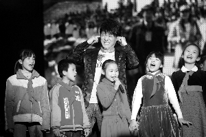 周華健與希望小學(xué)的小朋友合唱了《我是明星》,場(chǎng)面溫馨感人。
